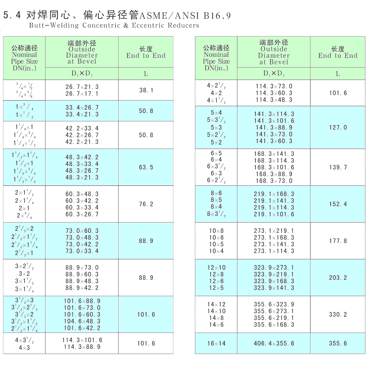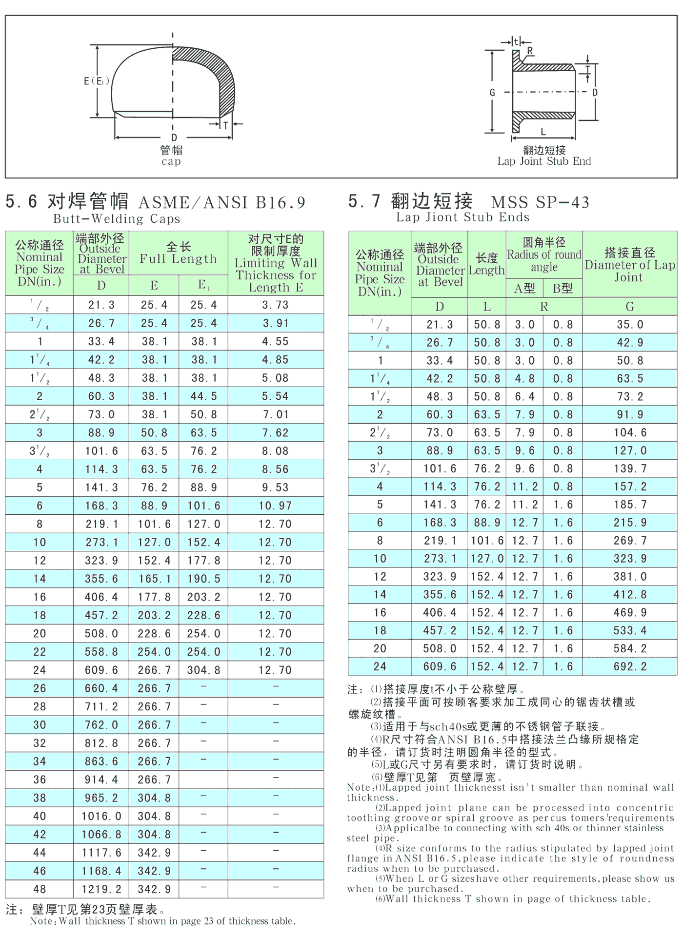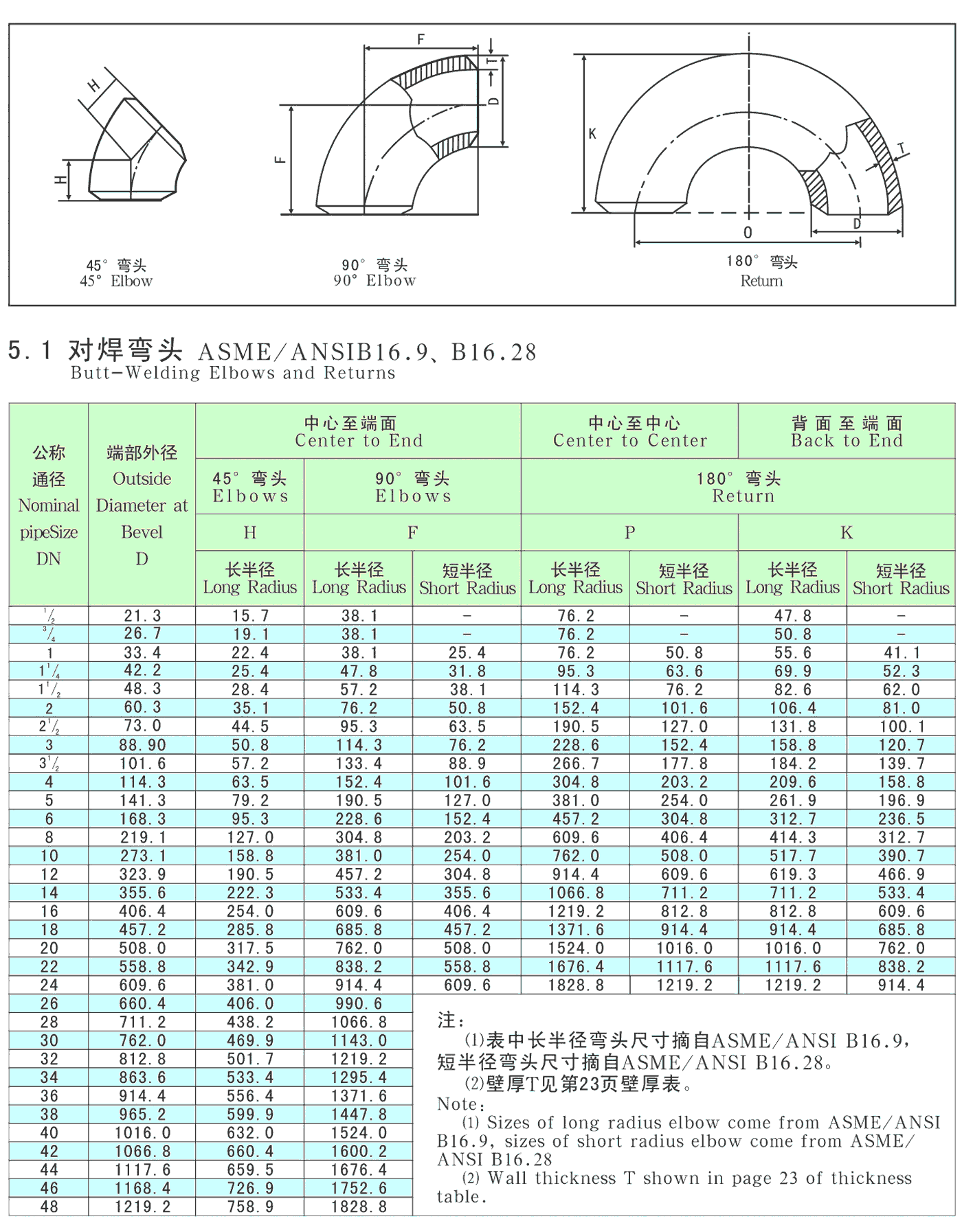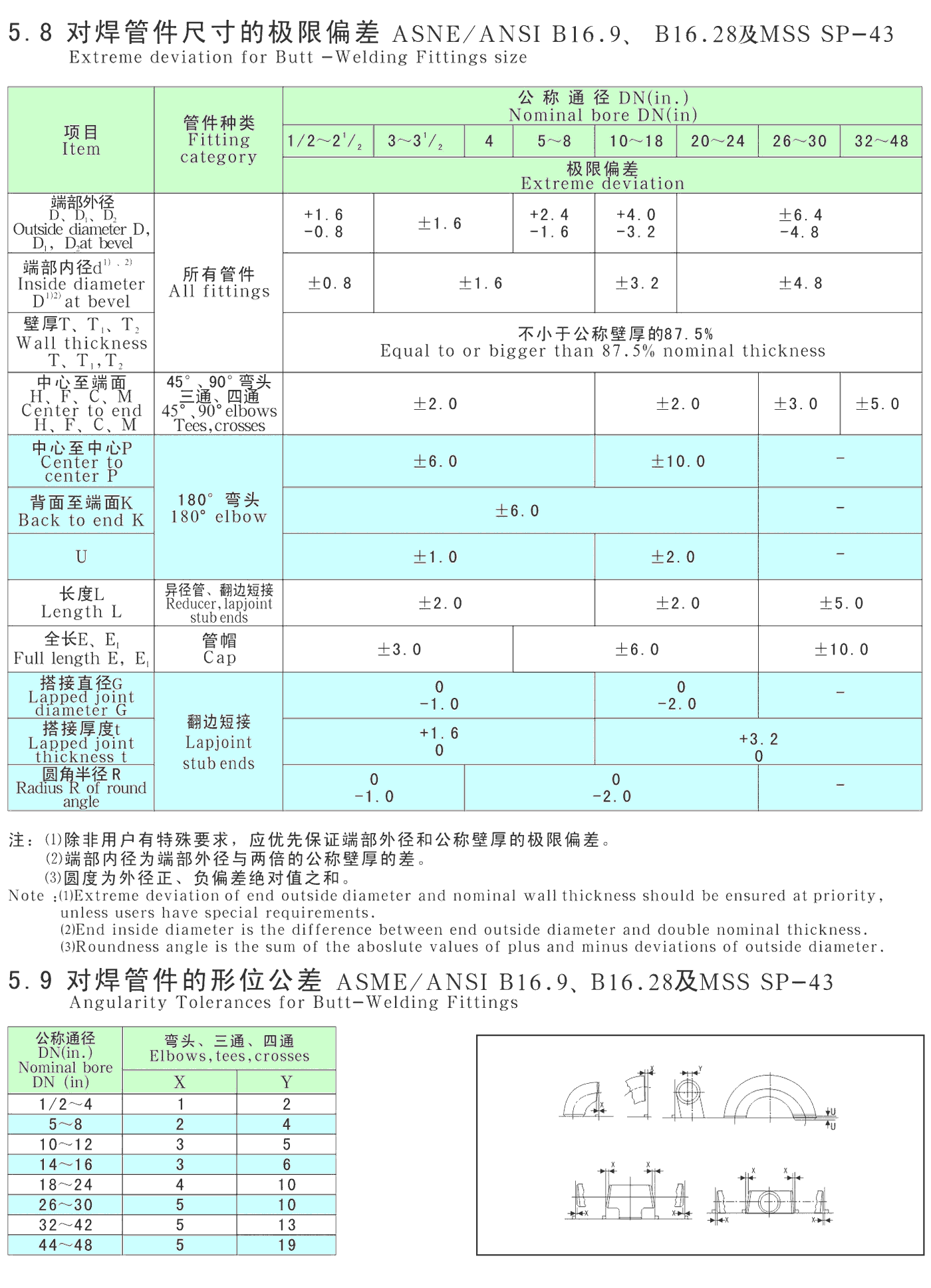 ANSI和MSS标准:对焊管件 ASME/ANSI B16.9、B16.28、MSS SP-43